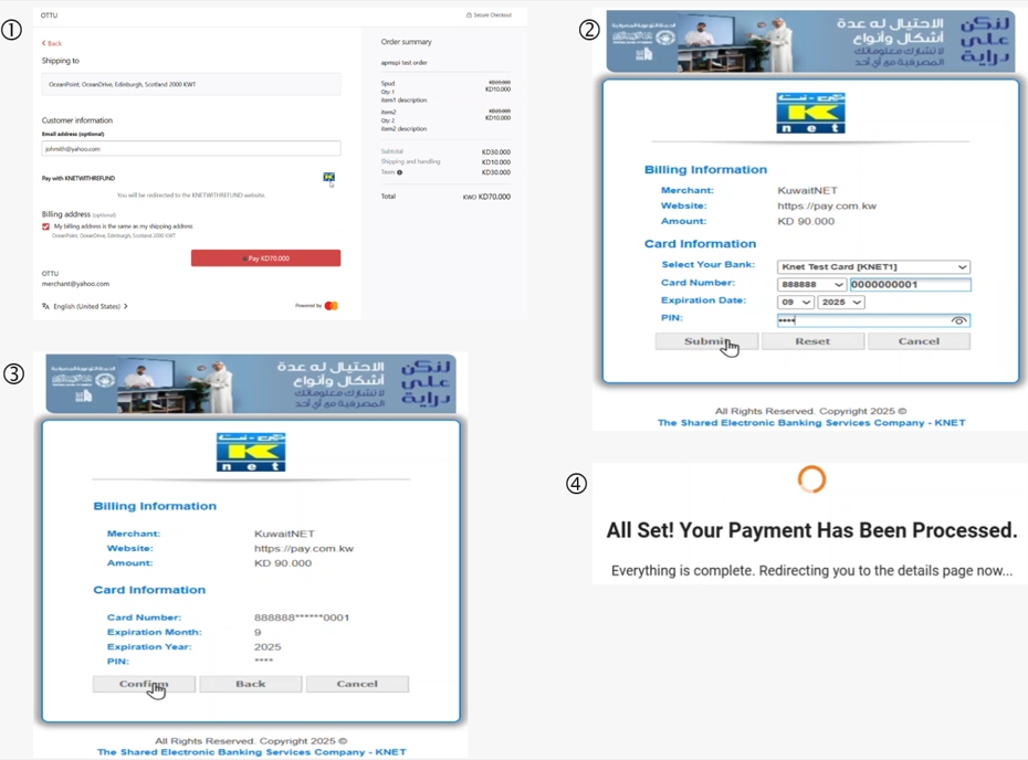 - Direct payment integration enables you to offer KNET on your checkout page.