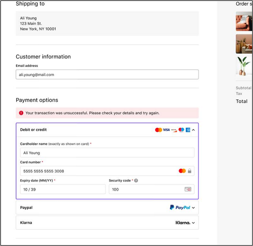 - Once you have all the payer and payment data, you can submit the Authenticate Payer request using scheme token, expiry, and cryptogram. You should invoke this when the payer clicks the "Pay Now" button on the checkout page.